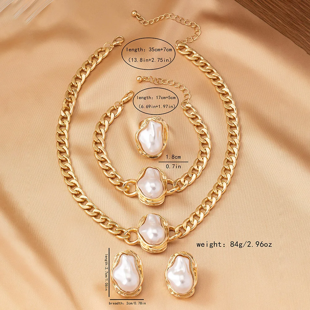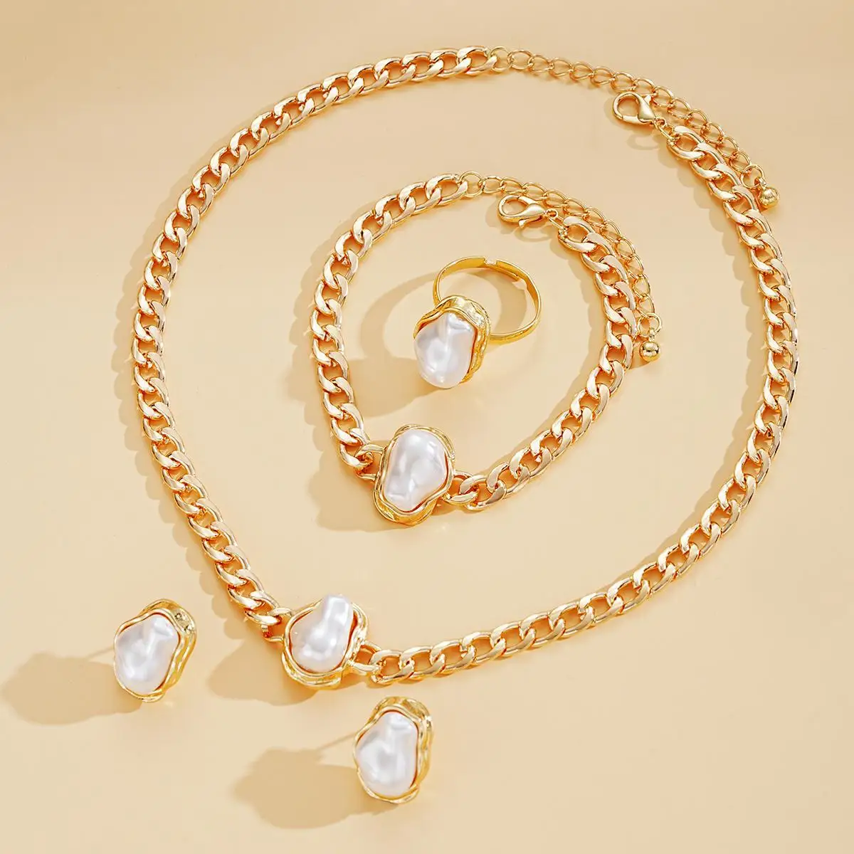 4 PCS Irregular Pearls Jewelry Set Korean Pearl Pendant Choker Stud Earring Rings for Women Classic Bracelet Wedding Jewelry