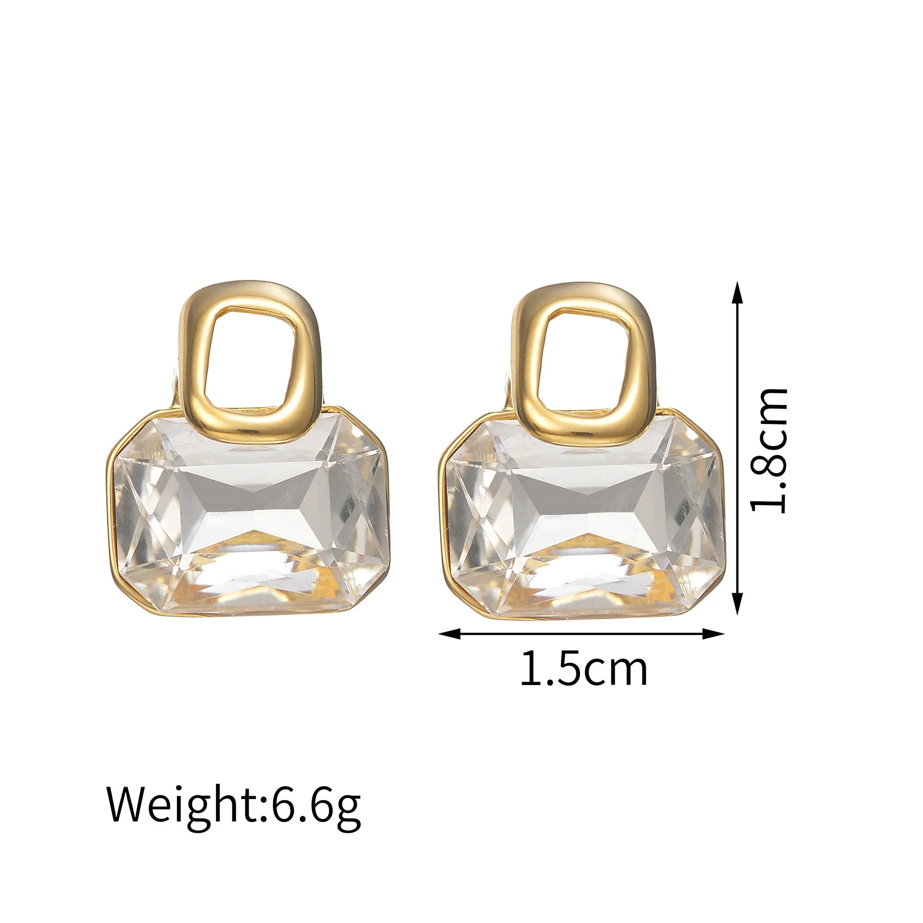 Classic Simple Geometric Zircon Rhinestone Stud Earrings Necklace Stainless Steel For Women Jewelry Set Birthday Gifts