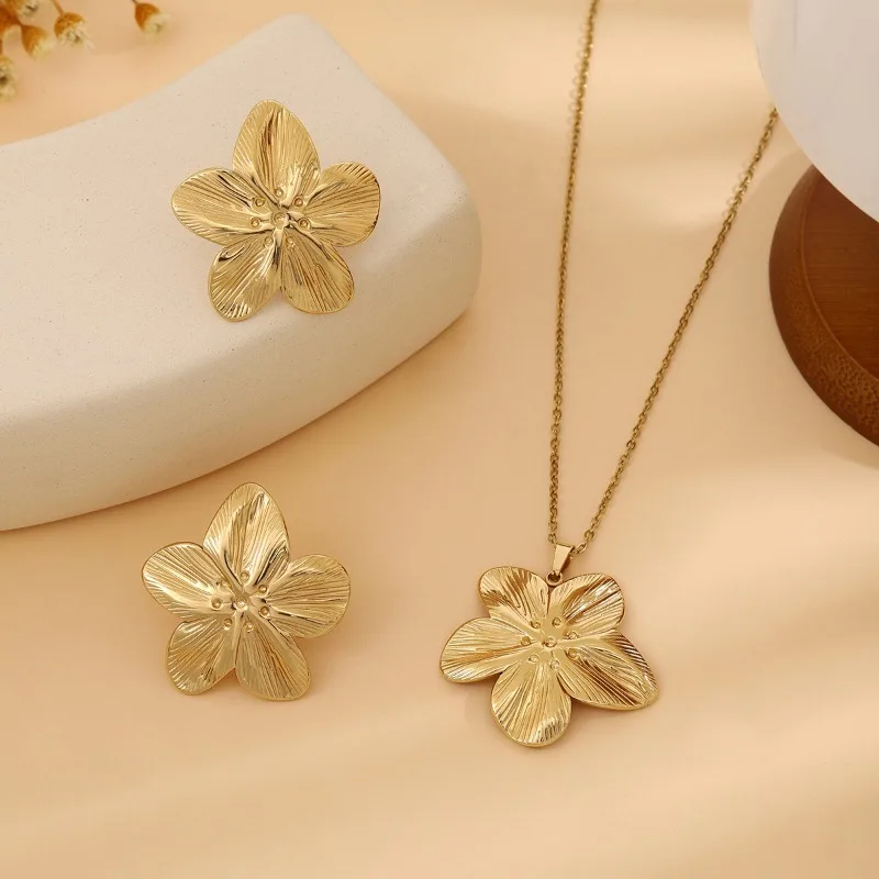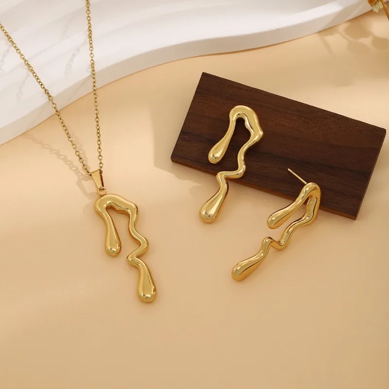 Fashion Alloy Jewellery Sets for Women Exquisite Irregular Luxury Creative Polygonal Geometry Flower Love Earrings Necklace Set